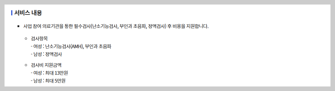 ● 모든 20-49세 남녀 중 검사 희망자(결혼, 자녀여부불문)를 대상으로 지원합니다.