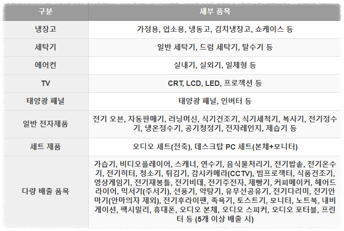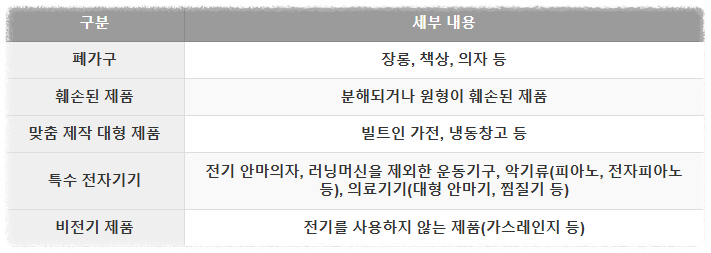 - 소형 가전: 프린터, 컴퓨터, 전기밥솥 등 (동일 품목 5개 이상일 경우 가능)
